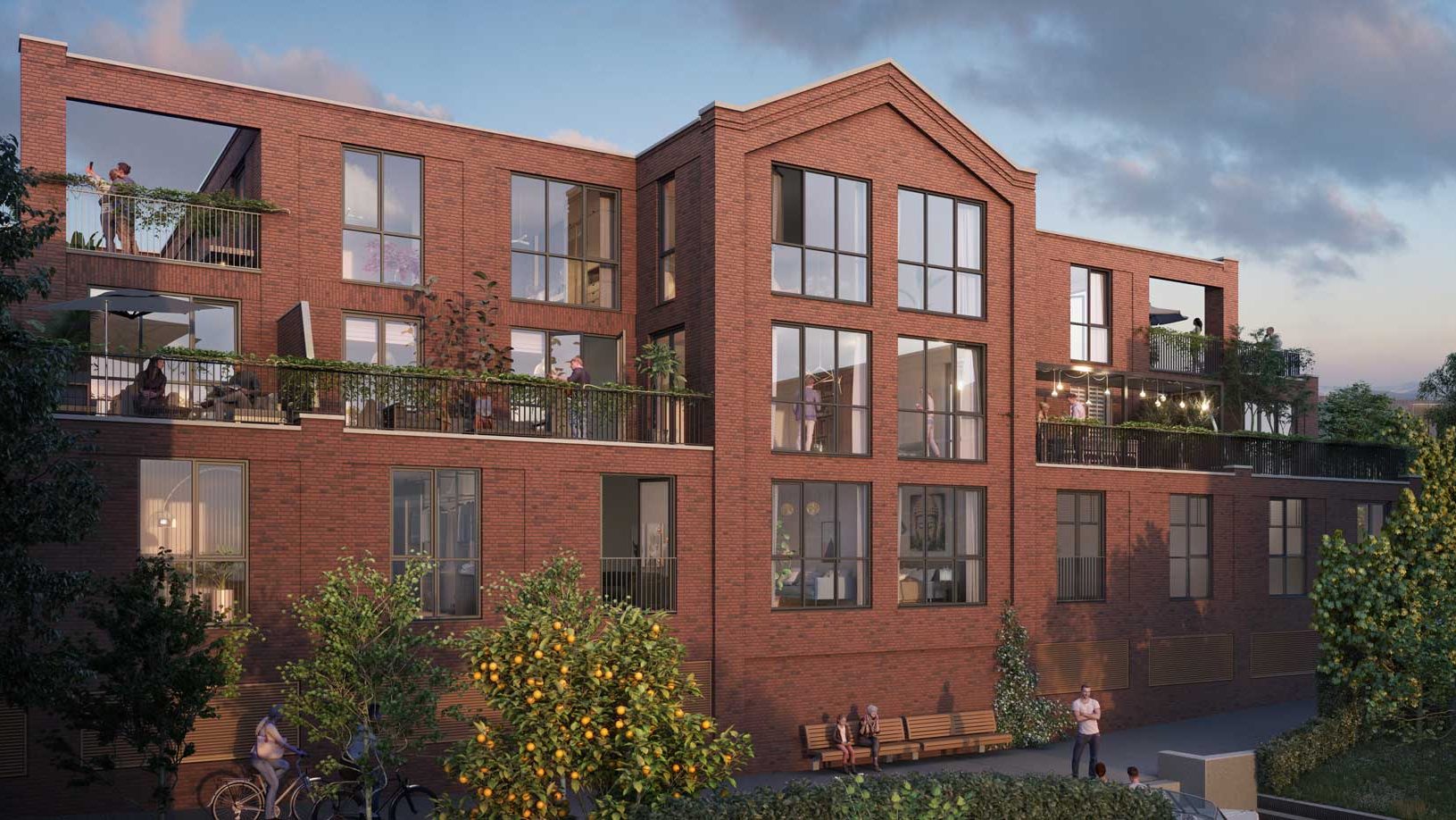 Het drielaagse gebouw combineert modern wonen met een industriële sfeer. Dankzij de getrapt uitgevoerde achtergevel beschikken de 5 exclusieve appartementen over een balkon of dakterras. De hoofdentree – centraal gepositioneerd, als bij een fabriek – zorgt voor een comfortabel binnenkomen, waarna u de trap of lift neemt naar de woning. Een appartementengebouw met extra’s dus.