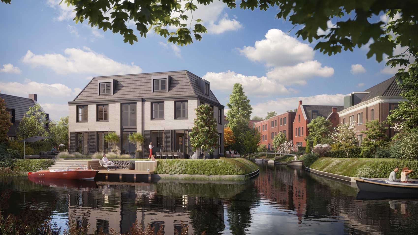 Op de plek waar Vecht en zijarm elkaar ontmoeten komt Villa Vechtvoorde – het grootste, en tegelijk ook mooist gelegen woonhuis van het plan.